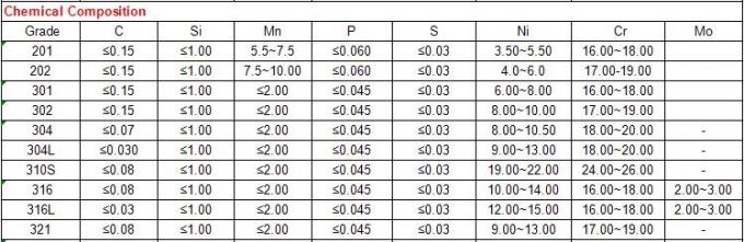 | الصف: 304،201 316l | معيار: أستم، إن، جيس، أستم A240M / A480M، جيس G4304، إن |