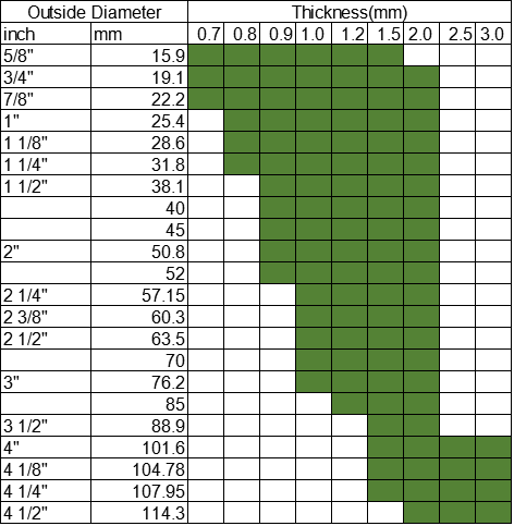 | القطر الخارجي (مم) | سمك (مم) | طول (مم) | |